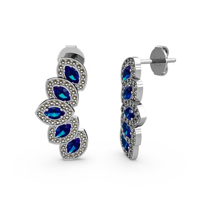 Dumanlı kuvars ve lab safir 18 ayar beyaz altın küpe