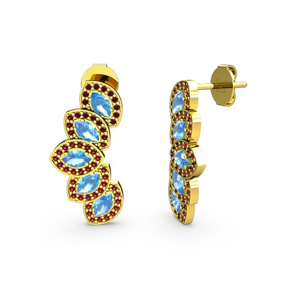 Garnet ve akuamarin 925 ayar altın kaplama gümüş küpe