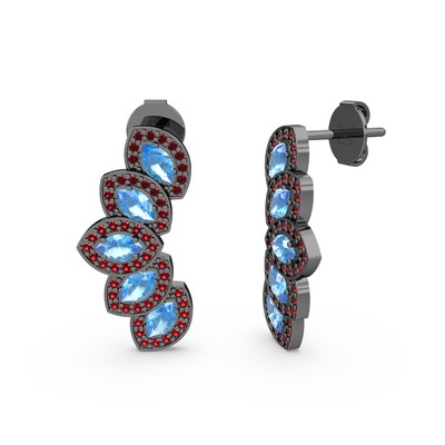 Garnet ve akuamarin 925 ayar siyah rodyum kaplama gümüş küpe