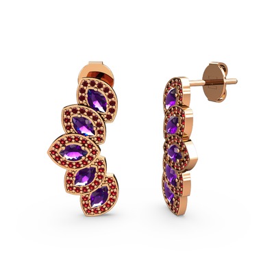 Garnet ve ametist 925 ayar rose altın kaplama gümüş küpe