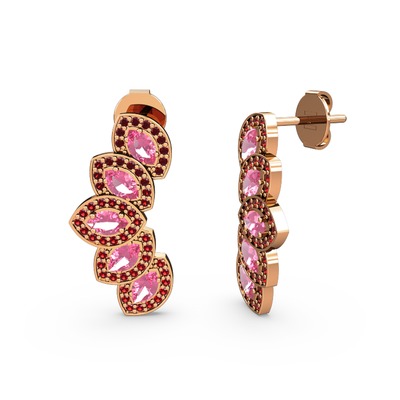 Garnet ve pembe kuvars 14 ayar rose altın küpe