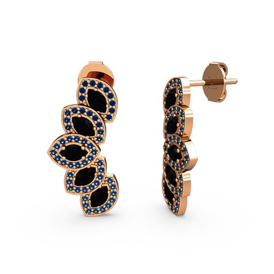 Lab safir ve siyah zirkon 18 ayar rose altın küpe