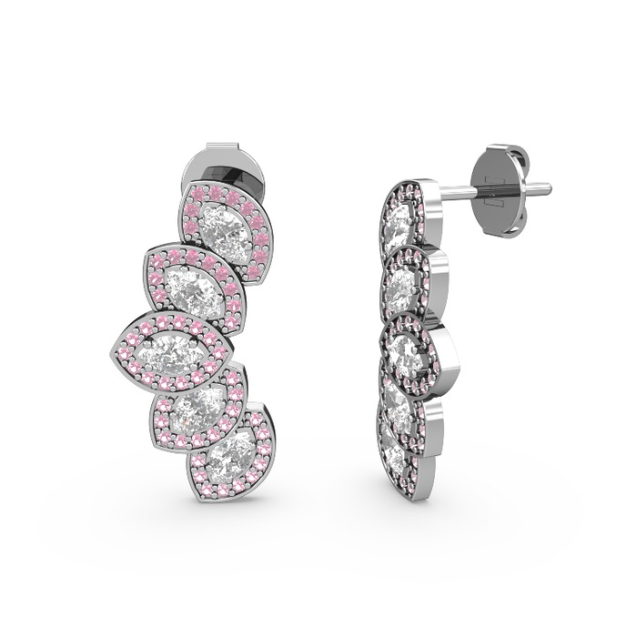 Pembe kuvars ve beyaz zirkon 925 ayar gümüş küpe