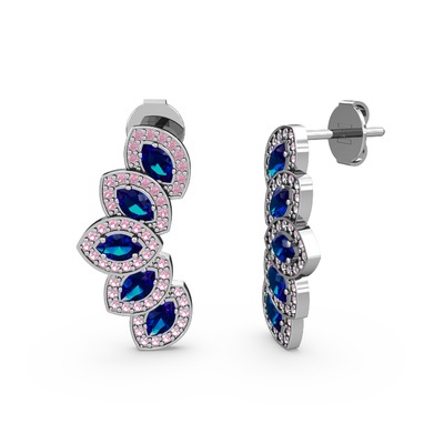 Pembe kuvars ve lab safir 18 ayar beyaz altın küpe