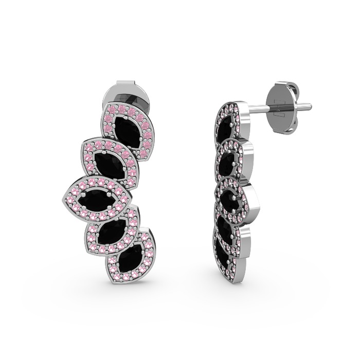 Pembe kuvars ve siyah zirkon 925 ayar gümüş küpe