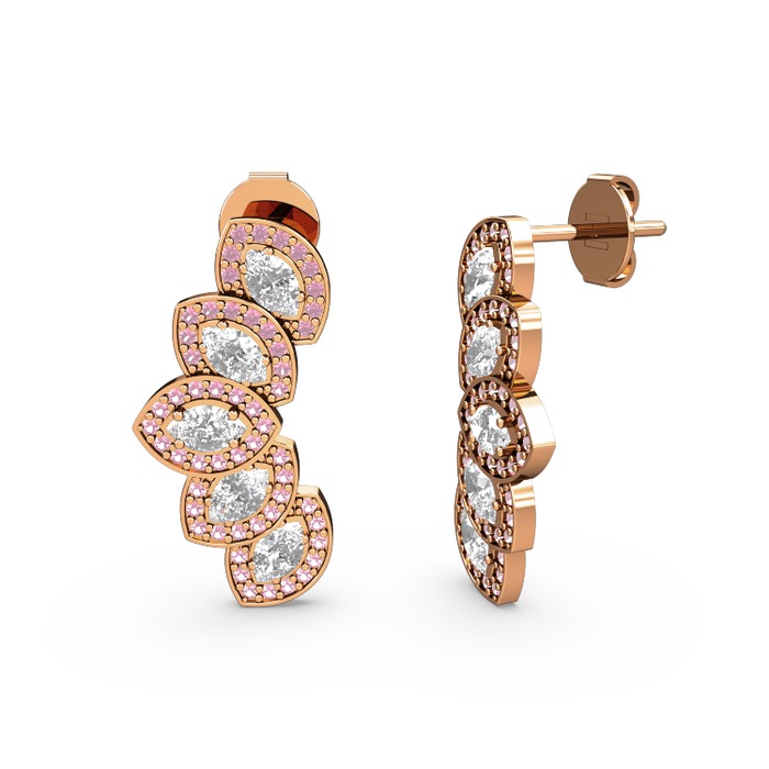 Pembe kuvars ve swarovski 8 ayar rose altın küpe