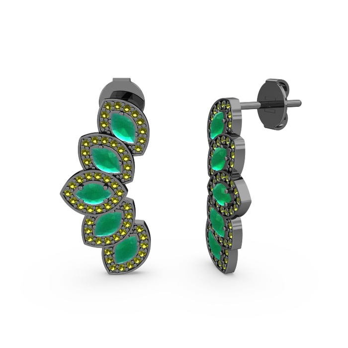 Peridot ve kök zümrüt 925 ayar siyah rodyum kaplama gümüş küpe
