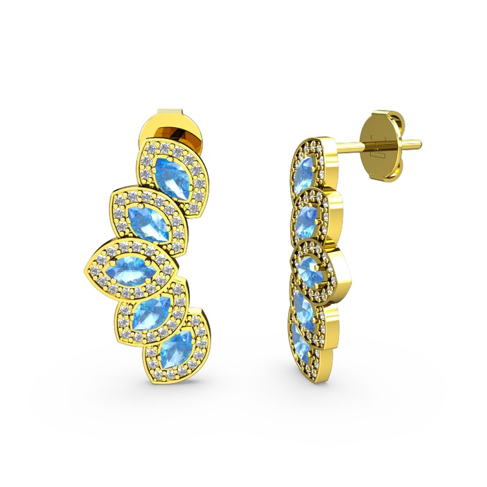 Pırlanta ve akuamarin 14 ayar altın küpe (0.088 karat)