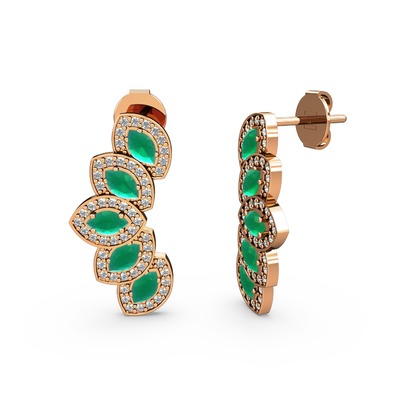 Pırlanta ve kök zümrüt 18 ayar rose altın küpe (0.088 karat)