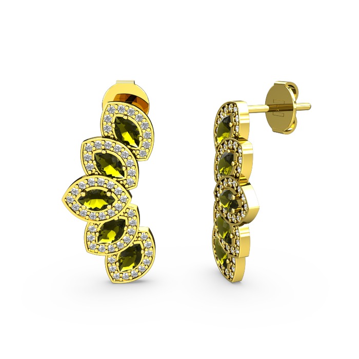 Pırlanta ve peridot 925 ayar altın kaplama gümüş küpe (0.088 karat)