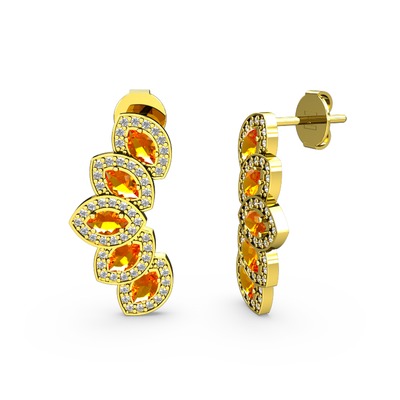 Pırlanta ve sitrin 925 ayar altın kaplama gümüş küpe (0.088 karat)