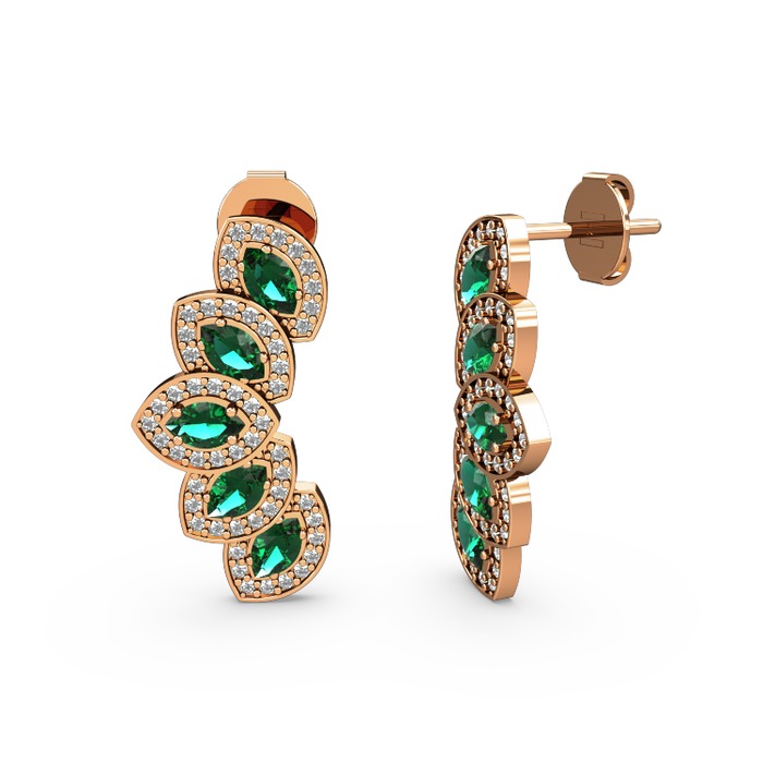 Pırlanta ve yeşil kuvars 925 ayar rose altın kaplama gümüş küpe (0.088 karat)
