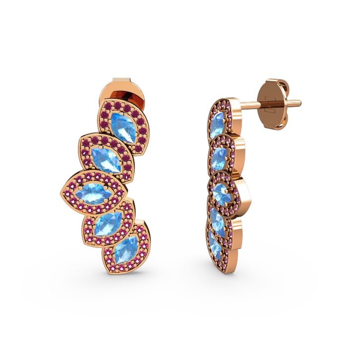 Rodolit garnet ve akuamarin 14 ayar rose altın küpe