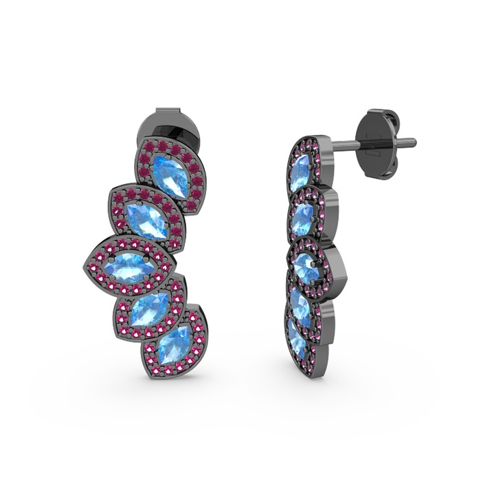 Rodolit garnet ve akuamarin 925 ayar siyah rodyum kaplama gümüş küpe