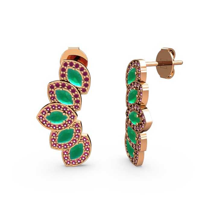 Rodolit garnet ve kök zümrüt 18 ayar rose altın küpe