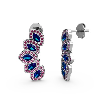 Rodolit garnet ve lab safir 18 ayar beyaz altın küpe