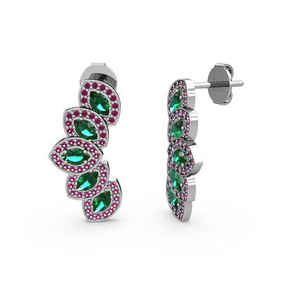 Rodolit garnet ve yeşil kuvars 925 ayar gümüş küpe