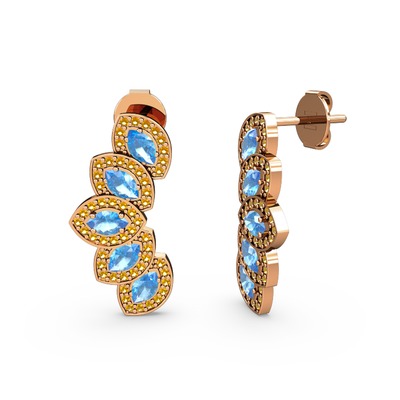 Sitrin ve akuamarin 8 ayar rose altın küpe