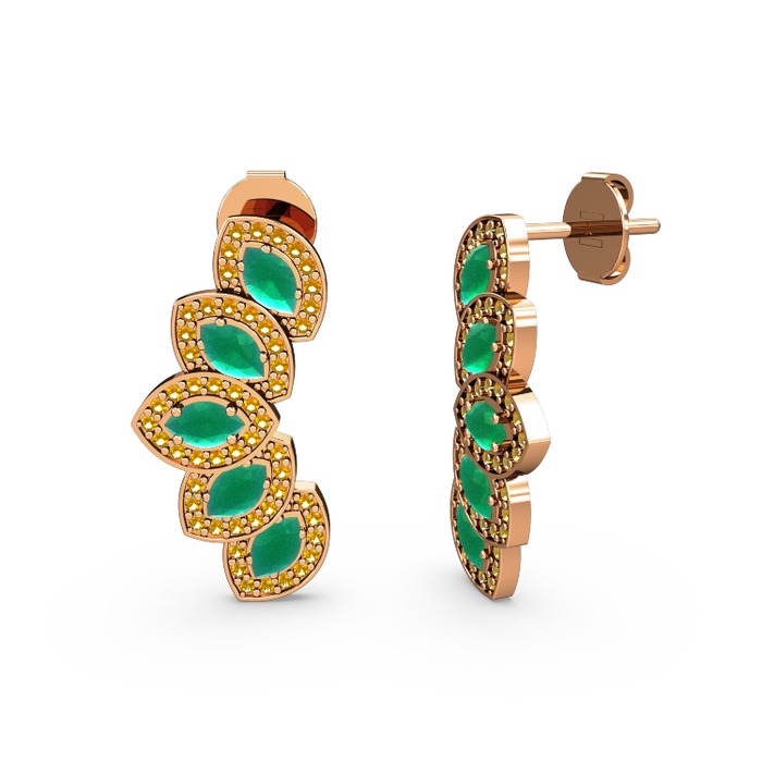 Sitrin ve kök zümrüt 18 ayar rose altın küpe