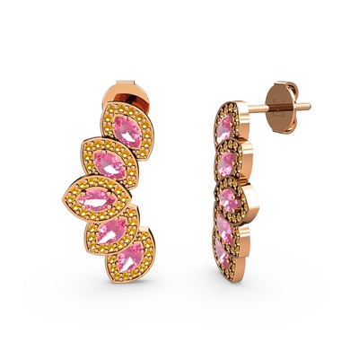 Sitrin ve pembe kuvars 8 ayar rose altın küpe