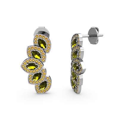 Sitrin ve peridot 18 ayar beyaz altın küpe