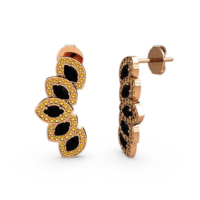 Sitrin ve siyah zirkon 14 ayar rose altın küpe