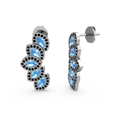 Siyah zirkon ve akuamarin 14 ayar beyaz altın küpe
