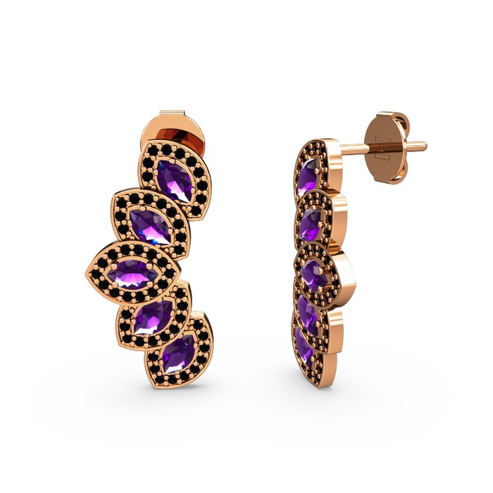 Siyah zirkon ve ametist 925 ayar rose altın kaplama gümüş küpe