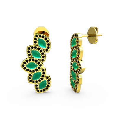 Siyah zirkon ve kök zümrüt 925 ayar altın kaplama gümüş küpe
