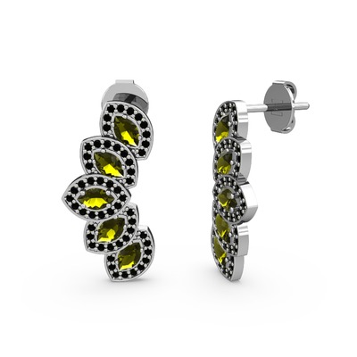 Siyah zirkon ve peridot 14 ayar beyaz altın küpe