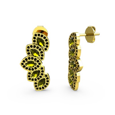 Siyah zirkon ve peridot 8 ayar altın küpe