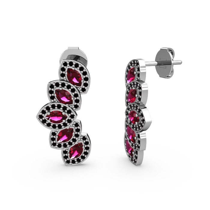 Siyah zirkon ve rodolit garnet 14 ayar beyaz altın küpe