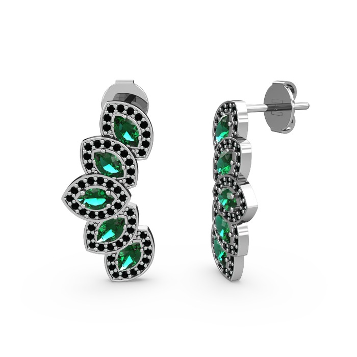 Siyah zirkon ve yeşil kuvars 8 ayar beyaz altın küpe