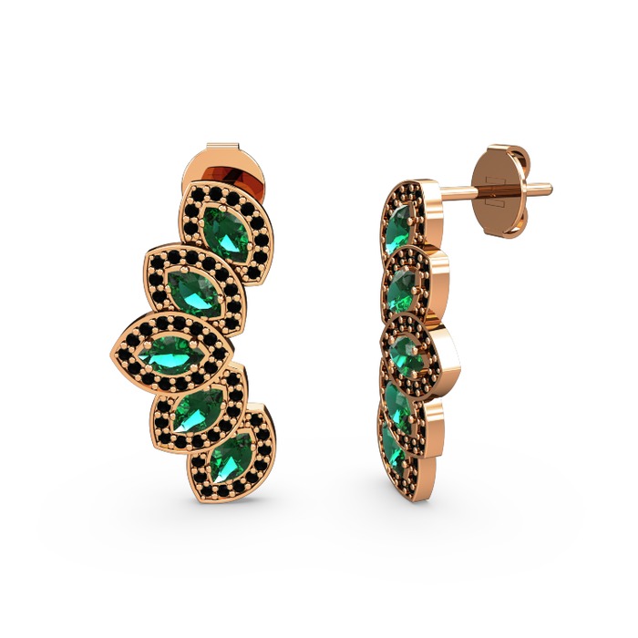 Siyah zirkon ve yeşil kuvars 925 ayar rose altın kaplama gümüş küpe