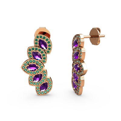 Yeşil kuvars ve ametist 14 ayar rose altın küpe