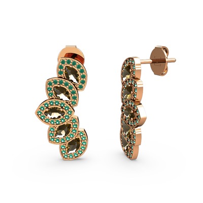 Yeşil kuvars ve dumanlı kuvars 18 ayar rose altın küpe