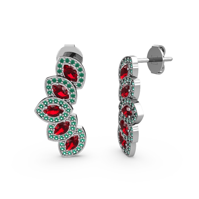 Yeşil kuvars ve garnet 925 ayar gümüş küpe