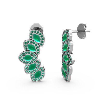 Yeşil kuvars ve kök zümrüt 8 ayar beyaz altın küpe