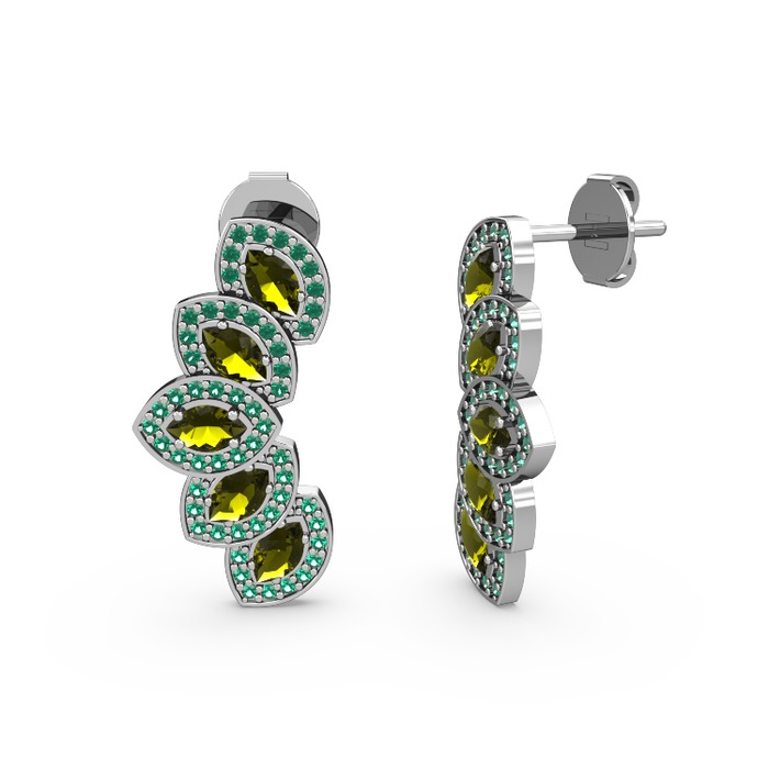 Yeşil kuvars ve peridot 18 ayar beyaz altın küpe