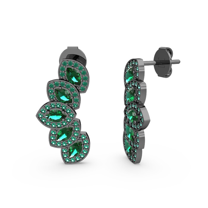 Yeşil kuvars 925 ayar siyah rodyum kaplama gümüş küpe