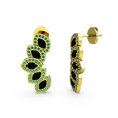 Yeşil kuvars ve siyah zirkon 8 ayar altın küpe