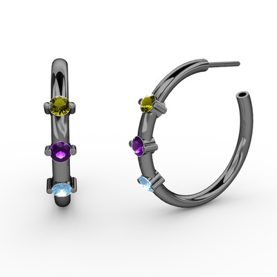Akuamarin, ametist ve peridot 925 ayar siyah rodyum kaplama gümüş küpe