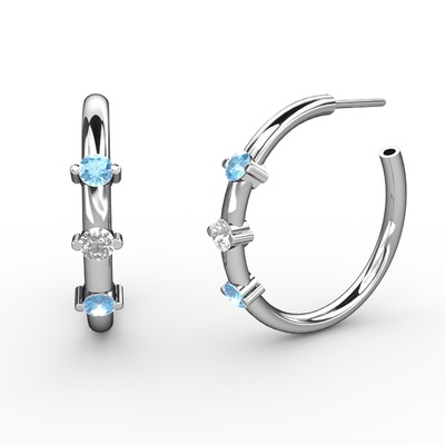 Akuamarin ve beyaz zirkon 18 ayar beyaz altın küpe