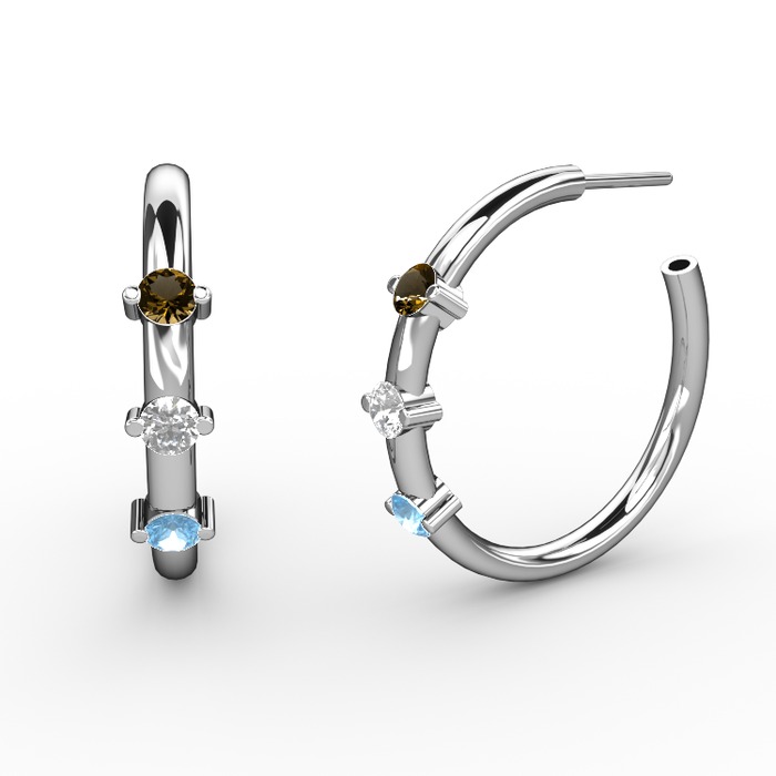 Akuamarin, beyaz zirkon ve dumanlı kuvars 18 ayar beyaz altın küpe