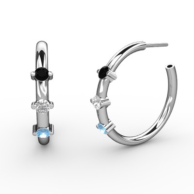 Akuamarin, beyaz zirkon ve siyah zirkon 8 ayar beyaz altın küpe