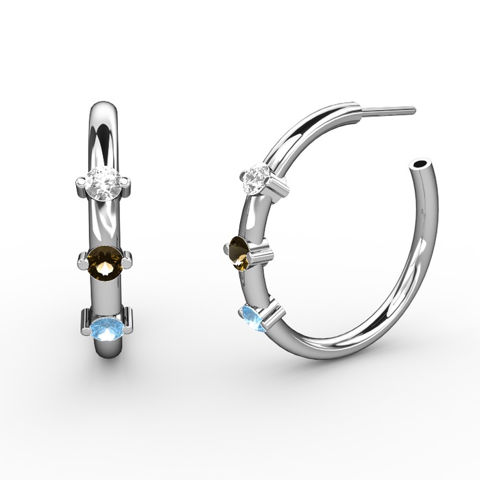 Akuamarin, dumanlı kuvars ve swarovski 925 ayar gümüş küpe