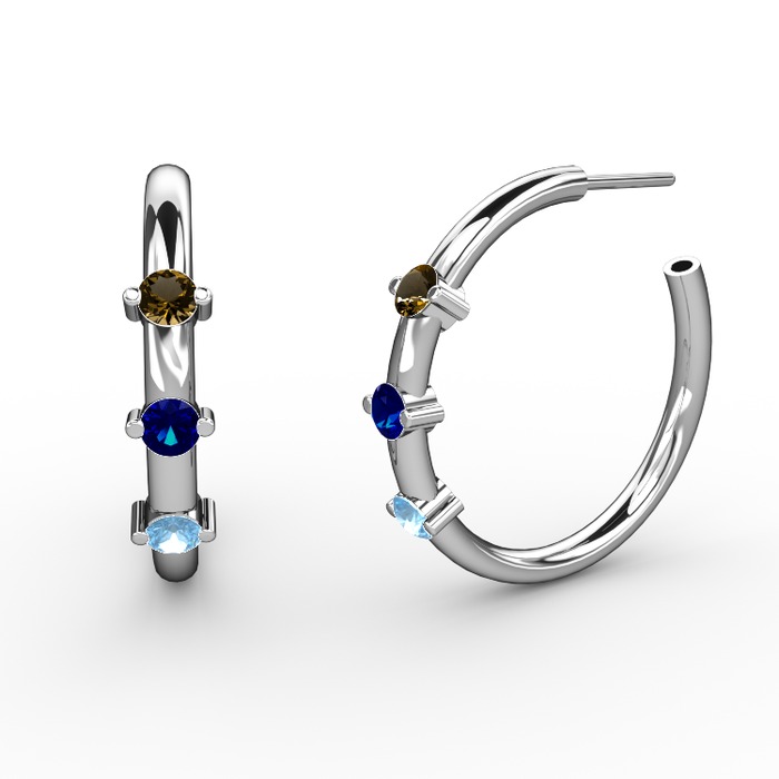 Akuamarin, lab safir ve dumanlı kuvars 8 ayar beyaz altın küpe