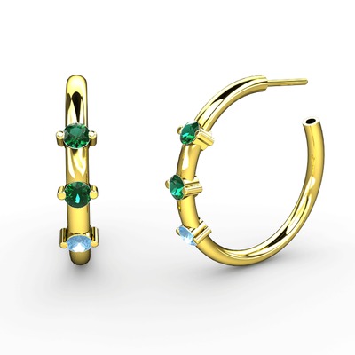Akuamarin ve yeşil kuvars 8 ayar altın küpe
