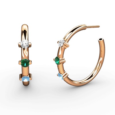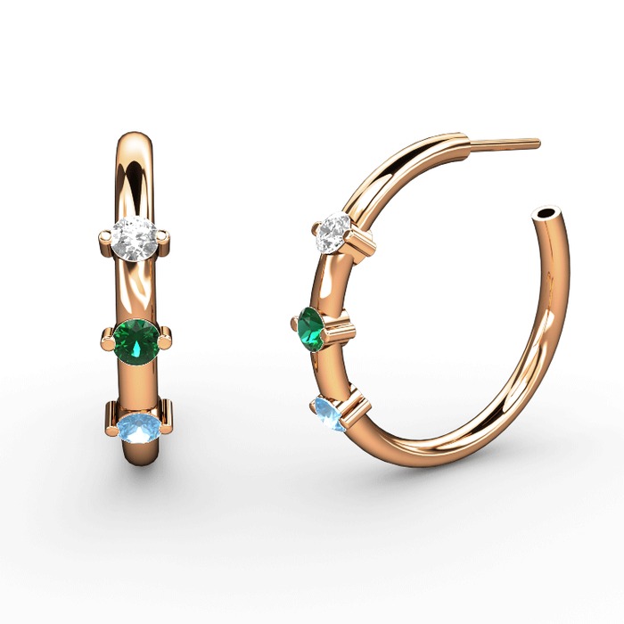 Akuamarin, yeşil kuvars ve beyaz zirkon 14 ayar rose altın küpe