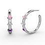 Ametist, beyaz zirkon ve pembe kuvars 14 ayar beyaz altın küpe